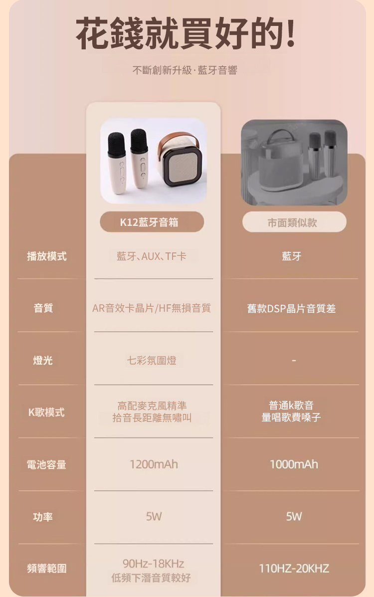 【送雙麥】便攜K歌藍牙音響