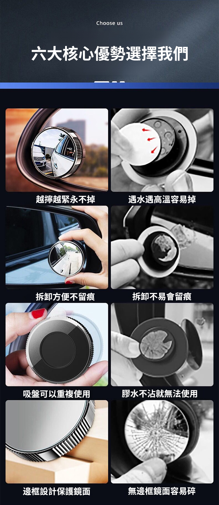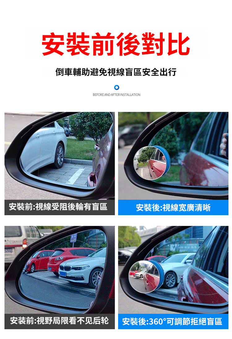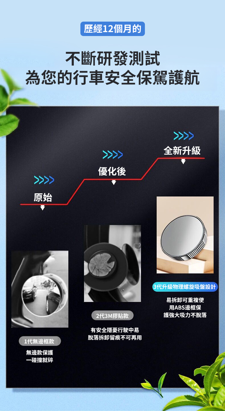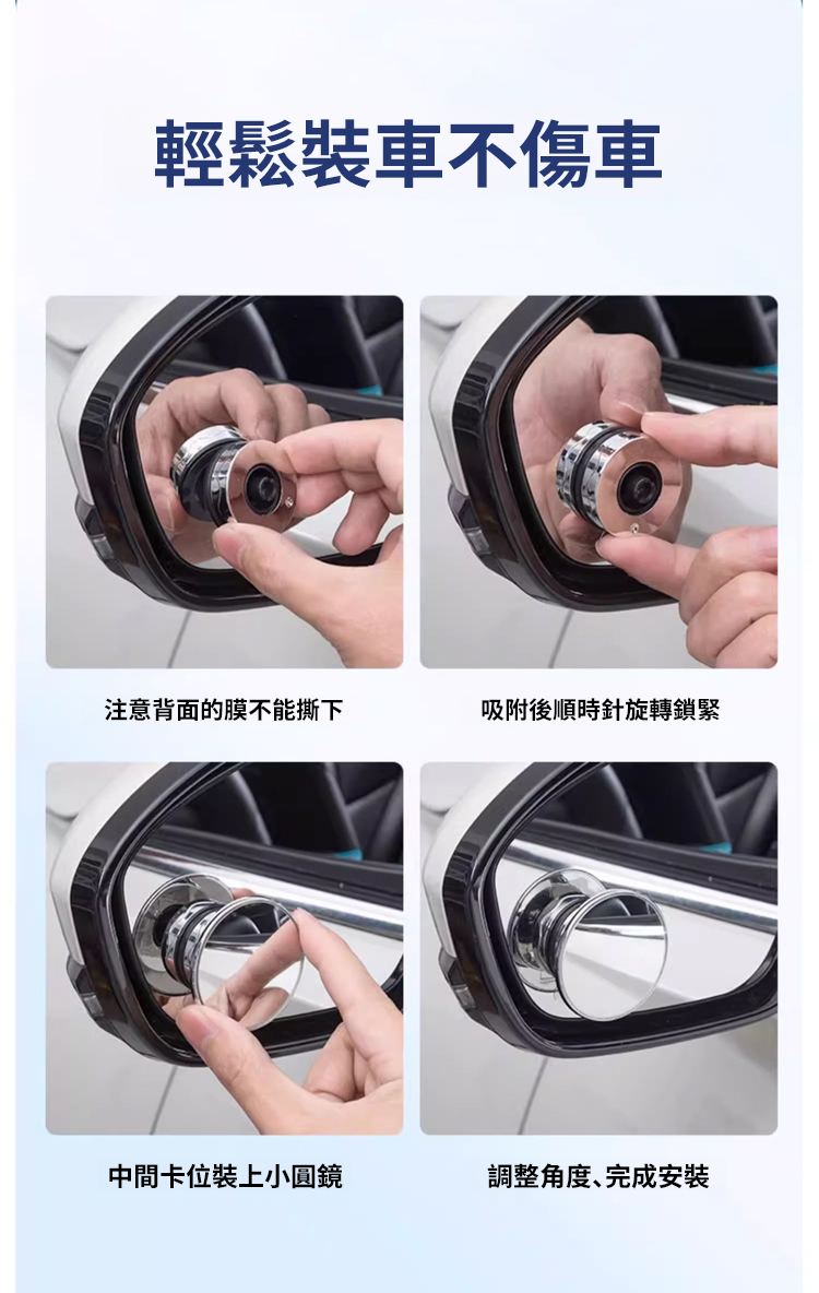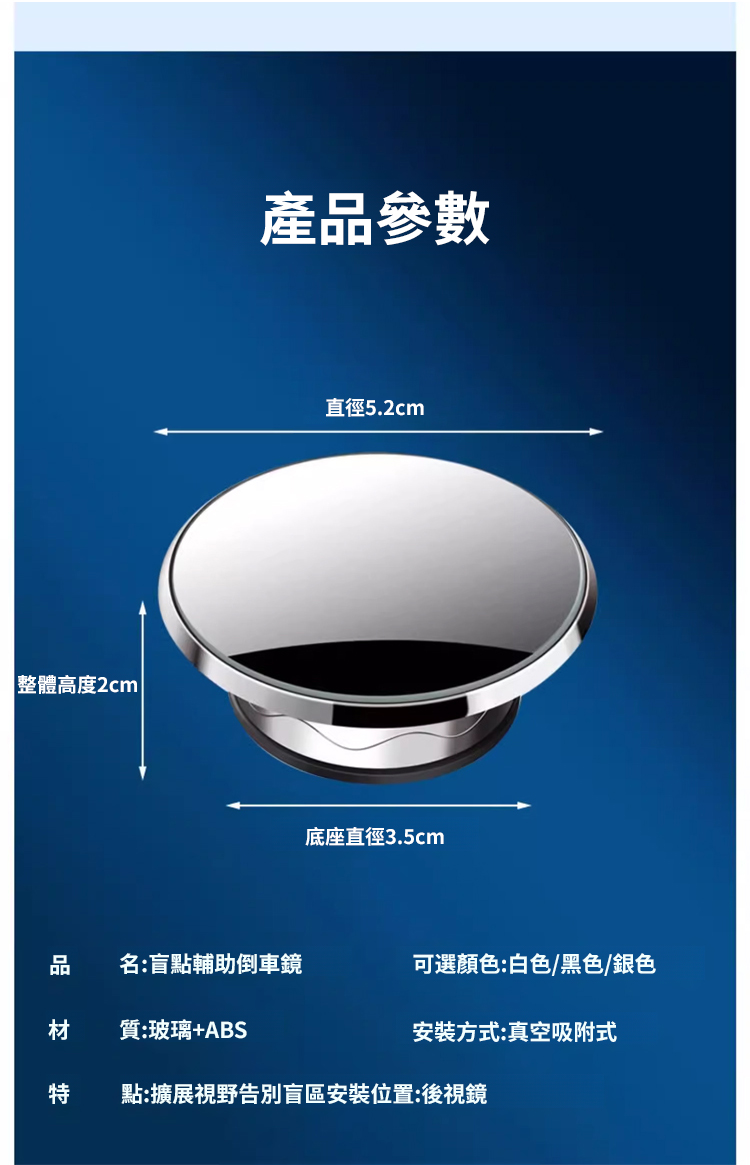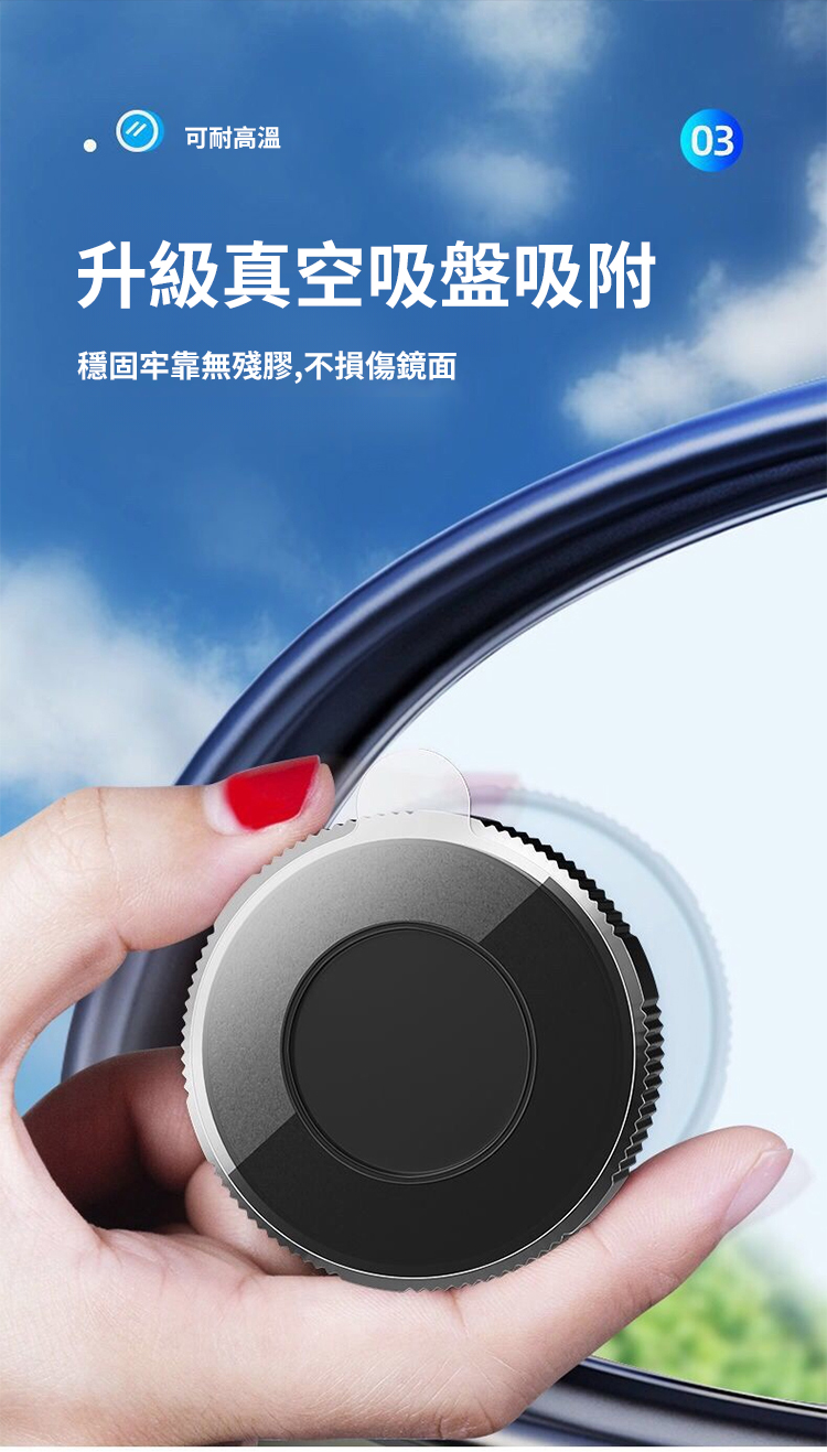 【隨意吸附不掉落】奈米真空吸盤倒車小圓鏡